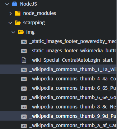 - 위 프로그램에서는, 위키피디아의 강아지 페이지에 있는 이미지 파일들을, img 디렉토리를 만들고