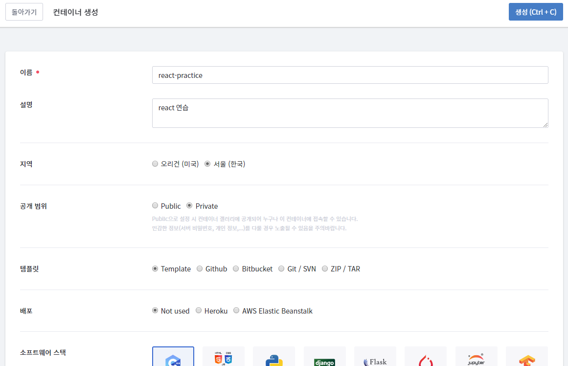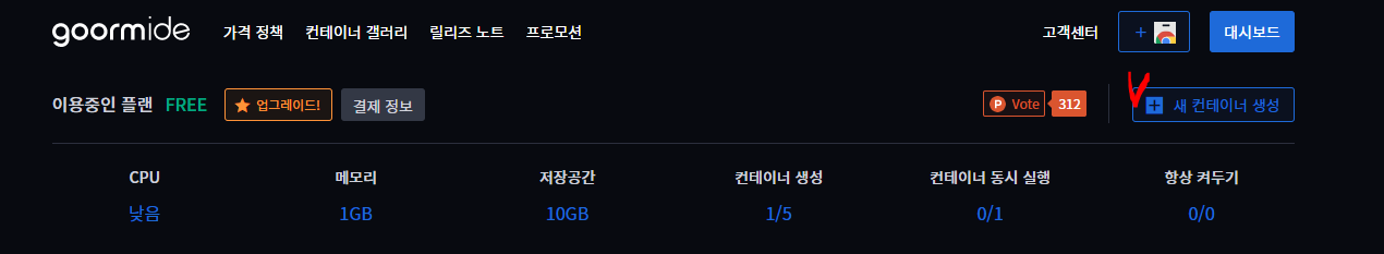 이 화면에서처럼 새 컨테이너 생성을 누르시면 됩니다.