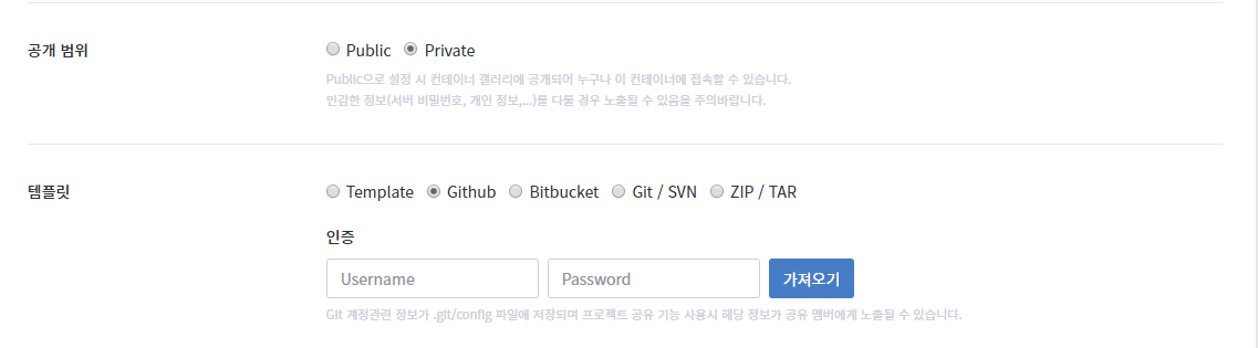 - 저는 제 Github와의 연동을 위해 템플릿을 Github로 변경하겠습니다.