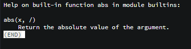 전의 듀토리얼에서 print, abs와 같은 함수들을 잠깐 다루어 보았다. 파이썬에서는 이러한 함수들의 사용법을 알려주기 위한 'help()' function을 내장하고 있다.